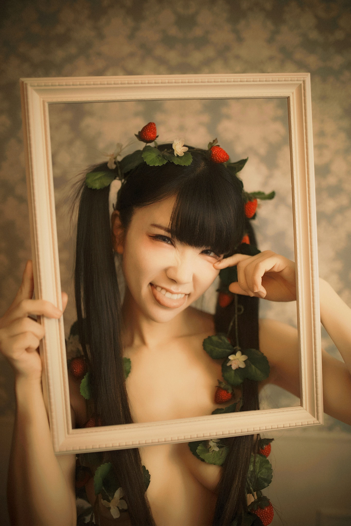 Ichigo Surprise features Wakaki Moe in two themed sets. The first is a gamer feel where she wears a crocheted lingerie look that feels playful. The second set shifts to a more daring concept, using strawberry vines to frame her body while keeping the presentation artistic and composed. Together, the two sets create a contrast between sweet and bold.
